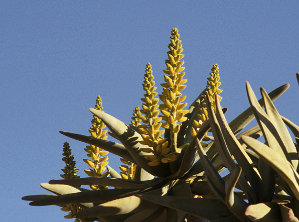 Erstmals im Alter von 20 bis 30 Jahren blühen die Köcherbäume. Im Winterhalbjahr (April/ Juli) tragen sie
